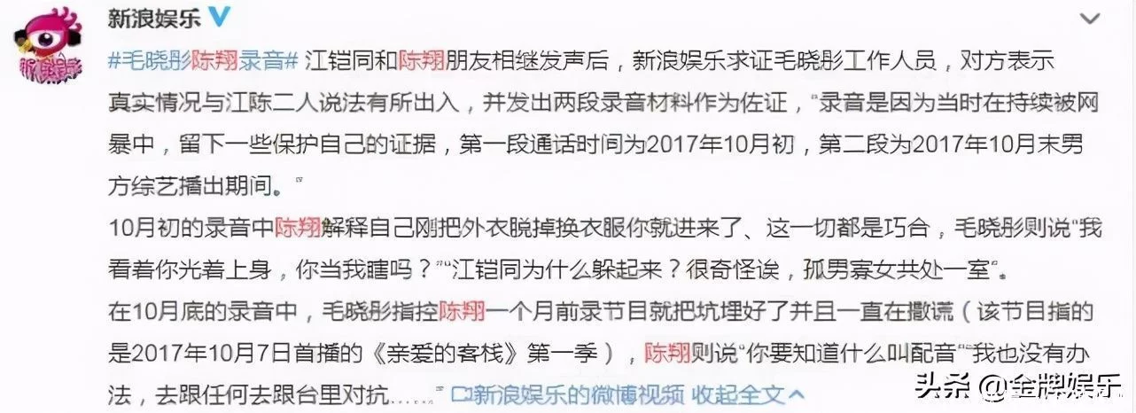 陈翔,毛晓彤,江铠同的事情还在不断发酵。但随着毛晓彤放出了当时和陈翔的电话录音,这件事也算是彻底进入了高潮