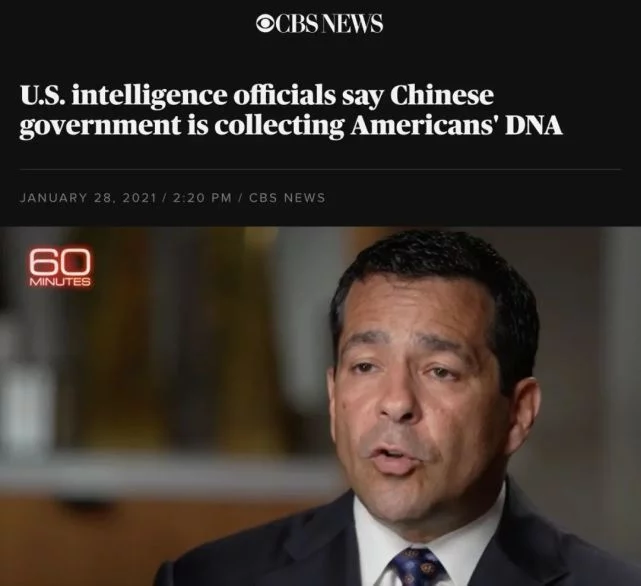 当地时间1月28日,美国国家反谍报与安全中心主任威廉·埃瓦尼纳在参加美国哥伦比亚广播公司的新闻节目时公然声称中国政府正在搜集美国人的DNA数据。节目组称,华大基因曾尝试在美国华盛顿地区开展新冠病毒核酸检测实验室的业务,还向美国其他五个州政府推广过这项业务,其中包括纽约以及加利福尼亚州。埃瓦尼纳对此提出“警告”称,“外部势力可以借此搜集、储存和利用新冠病毒检测的生物特征信息”,并认为“中国人正试图收集美国人的DNA,以赢得一场控制世界生物数据的竞赛。”