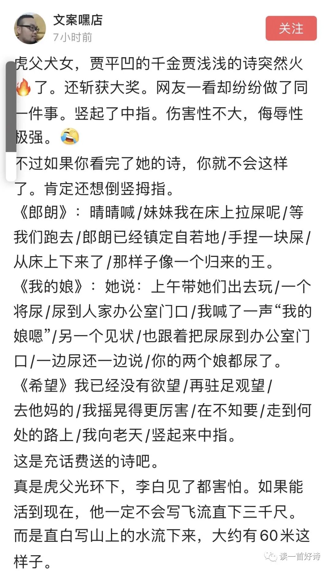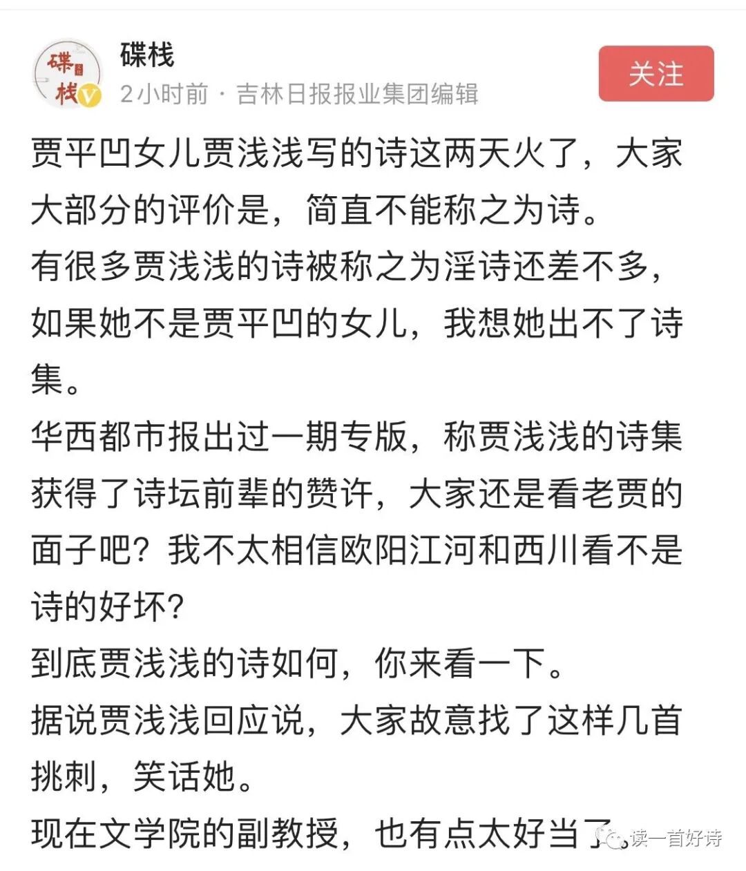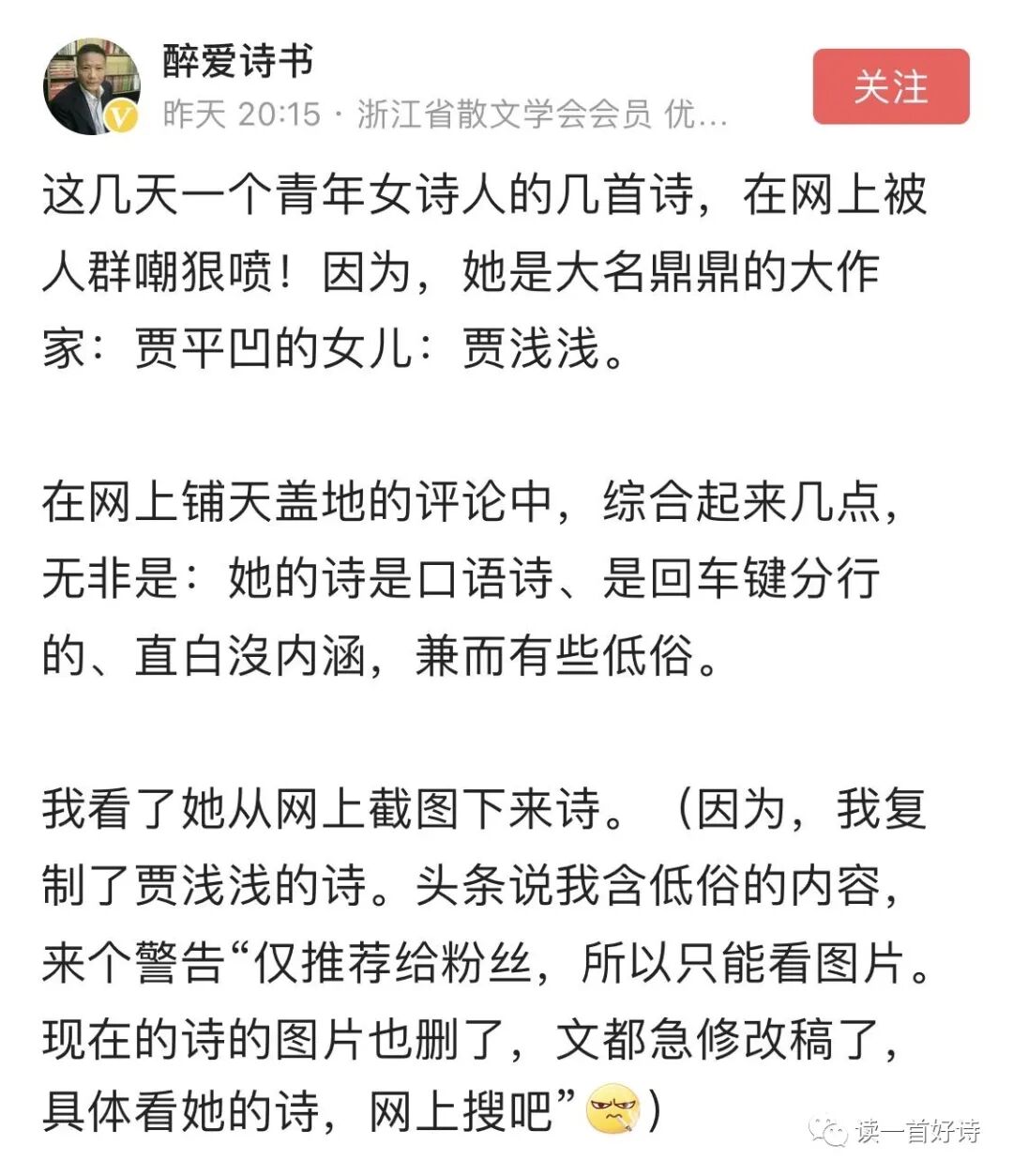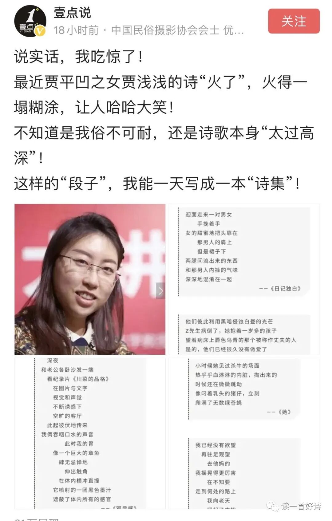 [原创随笔] 贾浅浅成功登上热搜,却把诗人的脸尽了