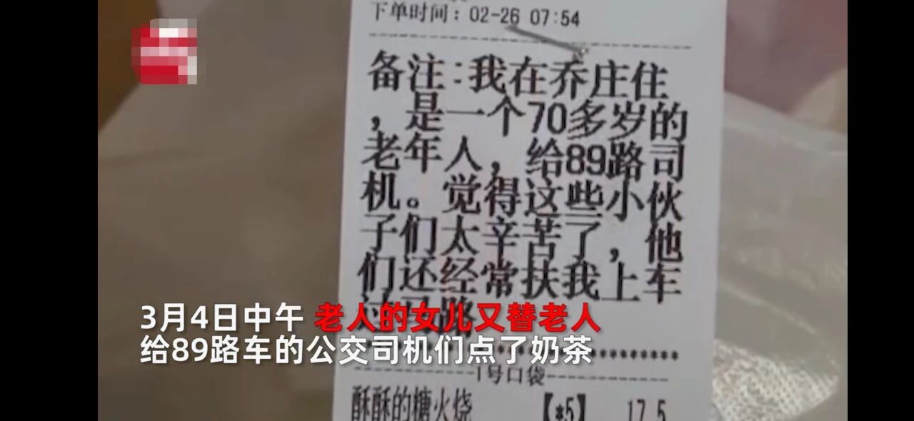 在山东,89路的公交司机连续十多天都收到了爱心外卖。