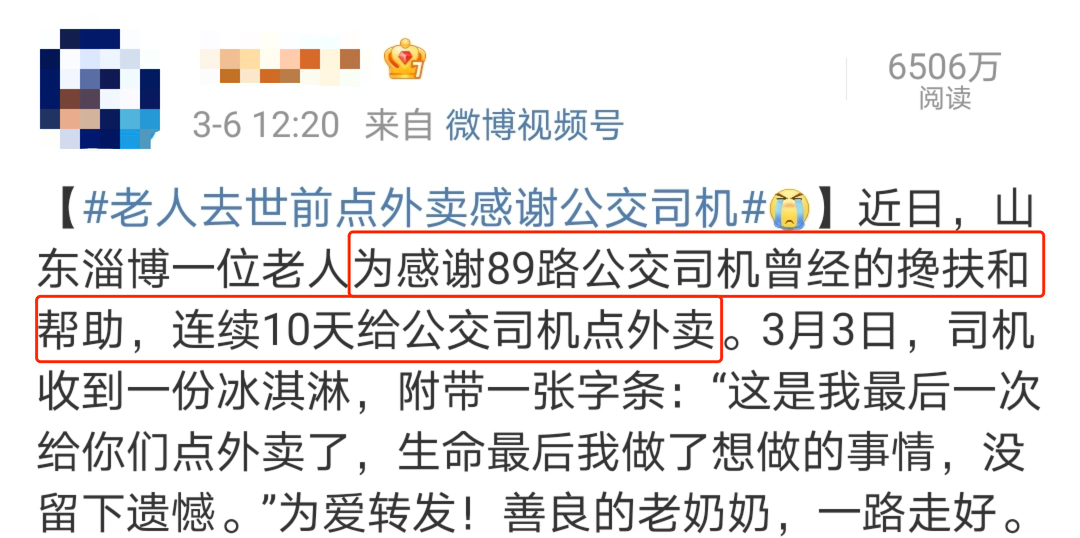 老人把这份善意记在心里,在临终前还惦记着要表达感激。在老人过世后,女儿更是继续点餐,感恩司机对母亲的帮助。