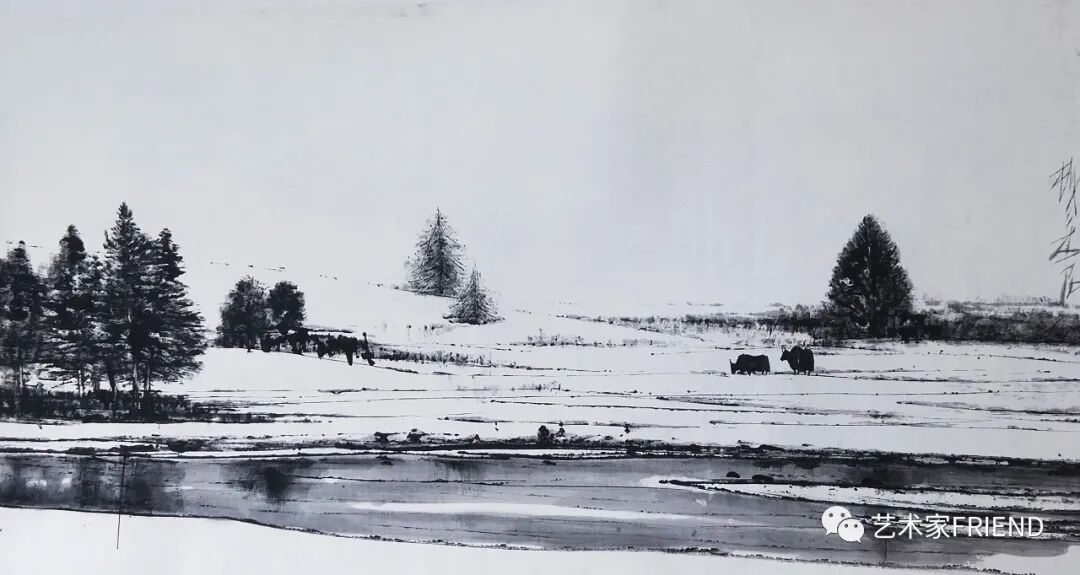 啊,雅客! 是对牦牛的呼唤声,更是画家对牦牛诸多情感的咏叹! 是画家以水墨精神对雪域图腾--牦牛的生命礼赞!