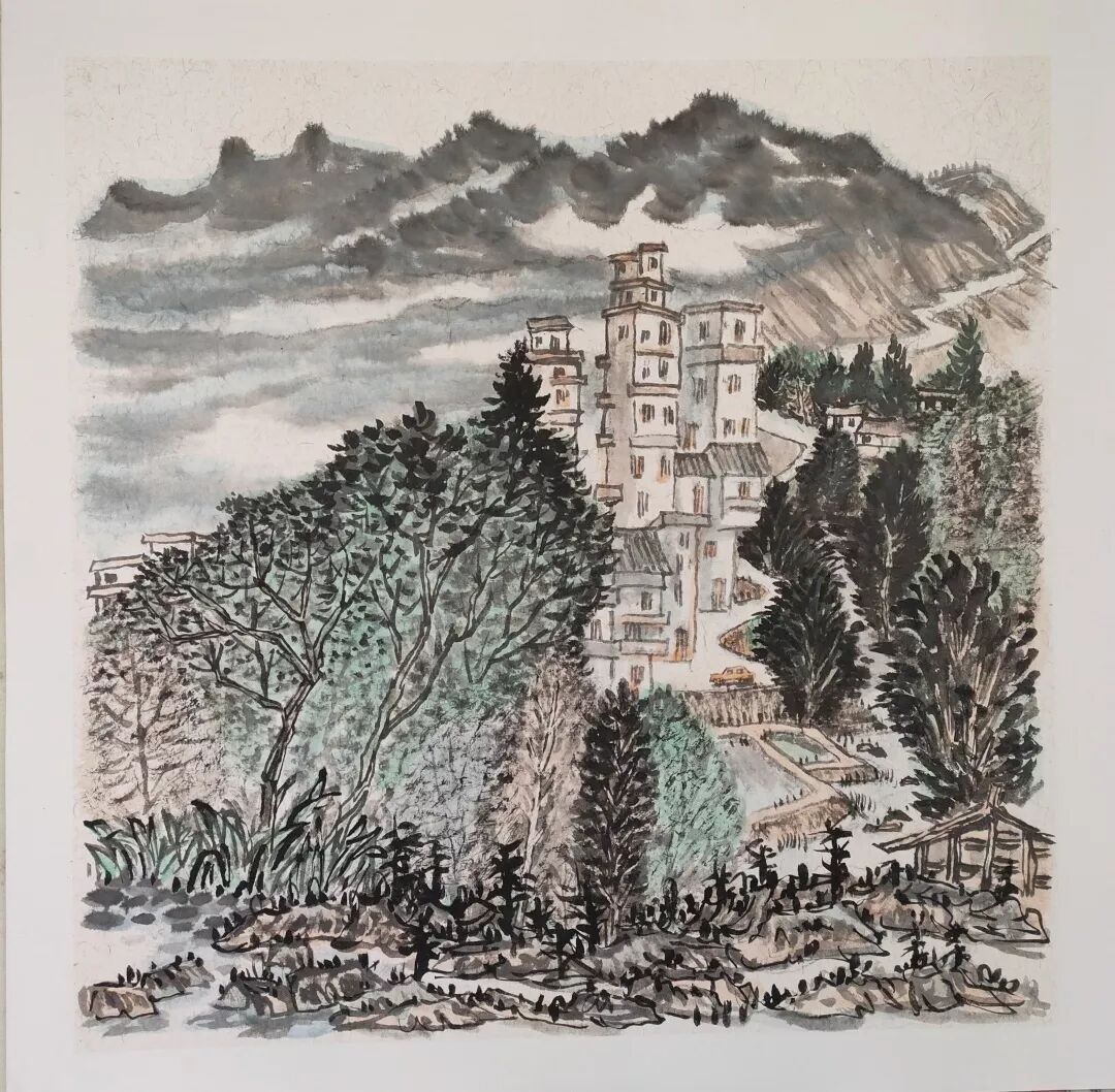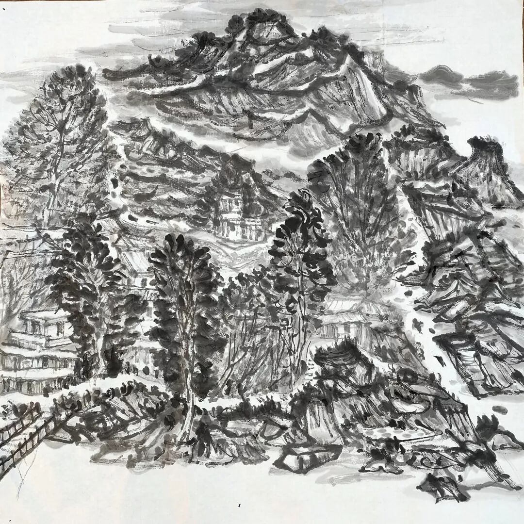 二十多年前,黄河老师的画名早已远播,在1997年举行的第五届中国工业版画中,他的黑白版画《序曲》荣获金奖,并收藏于“神州版画博物馆”。自此一发不可收拾。在中国石化长岭炼化公司工会俱乐部担任专职美术干部的黄河老师,把自己的爱好延伸到艺术领域的每个角落,他运用版画形式创作了一批称为“微型版画”的“藏书票”的艺术珍品,其中一幅“山居图”被土耳其国家博物馆收藏。2011年,黄河老师历时十个月,深入炼油厂区搜集素材,创作出中国石化系统第一幅长达25米的中国画长卷《十里油城》。黄河老师的国画长卷还有25米的《湘西洪江商城古韵》和16米的《广西元宝山苗寨妩媚图》。其实,我最喜欢的是黄河老师的山水画,他是循着传统的范式来的。我看他的山水,最喜欢他对传统山水的态度。他笔下的一树一石,一山一水,均能得中国画山水之神理。前不久看他的一幅山水,亭林瀑布,水哗哗然从山腰落下,下边的水花煞是好看,用笔过犹不及轻灵可喜。看画,其实是在看画家的心境和笔头,有没有是心,到不到是笔。中国当代操笔弄墨者,大至可分为两路,一是画山水以明自心,一是画山水以呼应这个时代。黄河老师是前者,是以兴趣与闲情对艺术做种种观照,是全身心地去玩味笔墨。