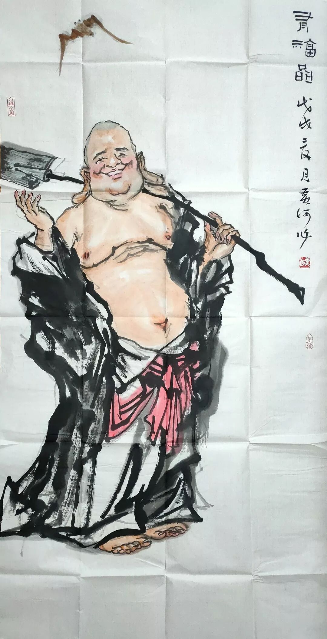 盛名这下的黄河老师是条汉子,个头与块头都似乎要比别人大一号。我以为,黄河老师于书画之外,是喝酒最好看,人坐在那里,说不喝,说不喝,但为了朋友会马上再来一杯再来一杯,或者,再来一杯!那气概真可以说得上是古典,而且是《水浒》中的古典。看他喝酒,才让人知道什么是豪爽之气。因为他,你也许会普遍地喜欢上山东人,然让人惊悚不已的是,黄河老师是生长在大漠孤烟直的甘肃兰州军营的江苏人。热爱生活,童心常在的黄河老师,每年都要自费旅行写生,南下中贵州湘西苗寨,北上东北三省,几次去西域考察,是“老子犹堪绝大漠”的气概。
