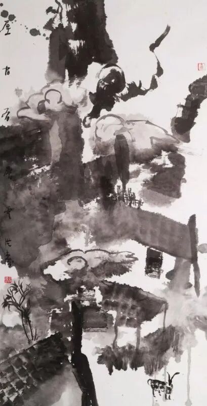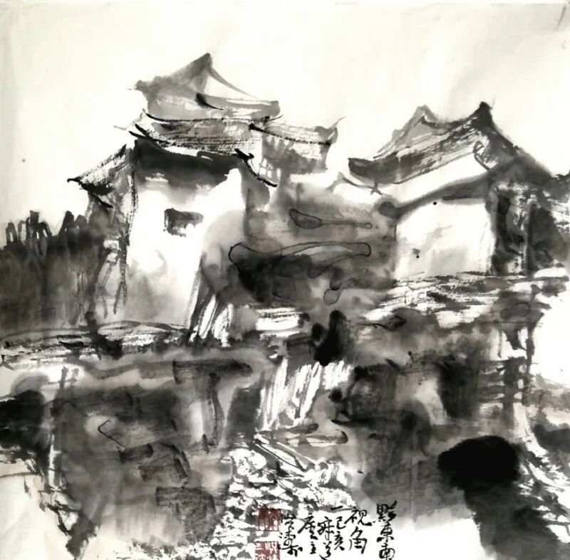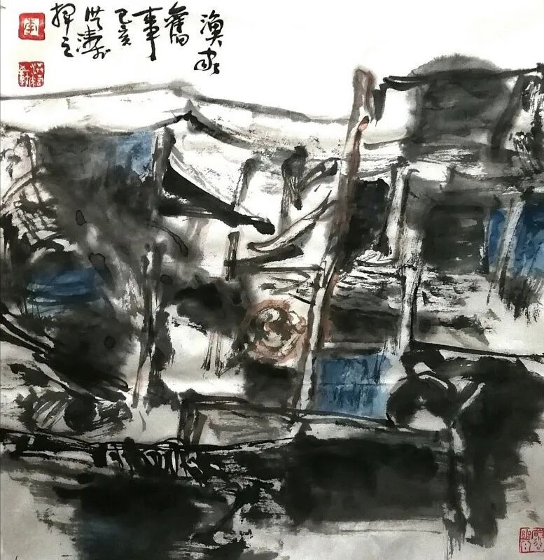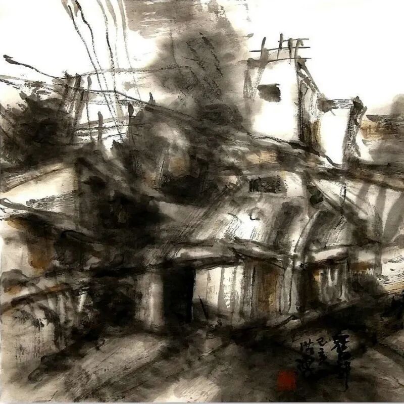 从白石翁“似与不似”,宾虹老的“雨淋月移”说,到石涛“话语录”,谢赫的“六法论”。洪涛先生均能受到启发,得到调动,受到感染,并能极富天赋地心领神会,荟萃圭臬,化为己用。尤其在都市乡村的写生中,他化自然万象为笔墨意象,以笔墨意象萃心源语境。“吴带当风”的灵动,“曹衣出水”的简静,“泼墨仙人”的率性,“抽象派”的质感、“印象派”的意韵。