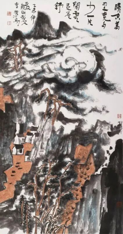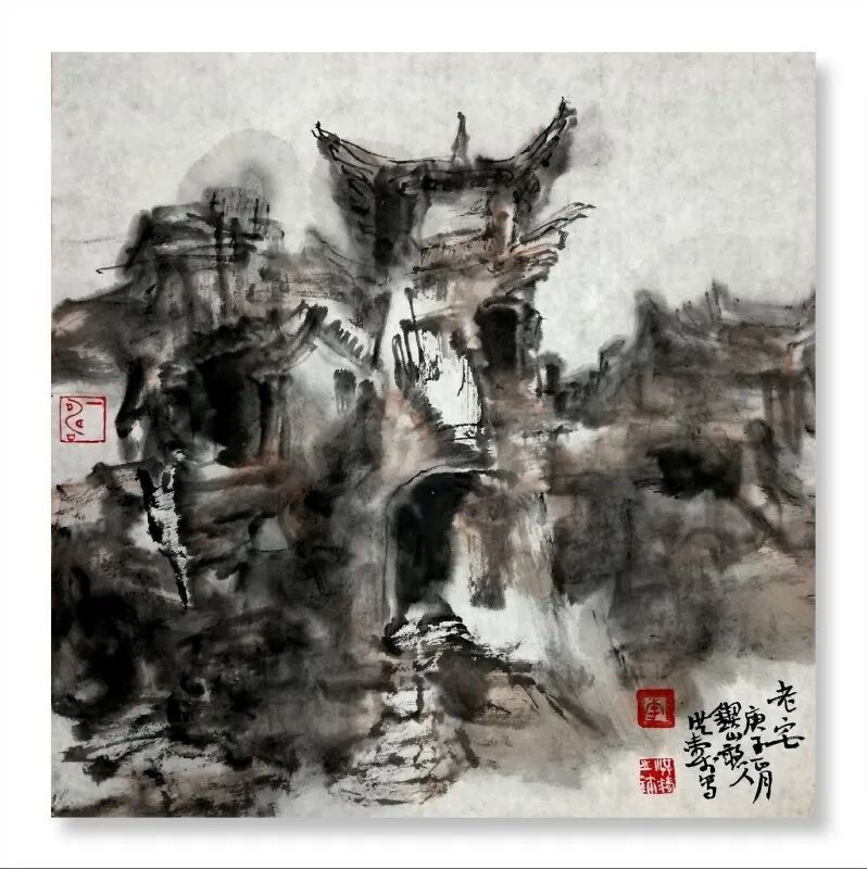 在他会古鉴西,观形悟理,缘物造境的心中,氤氲淋漓,汪洋恣肆,澎湃激扬。他以“搜遍奇峰”的毅力与勤奋,品味寄情于古朴错落的村舍,放怀挥洒在逶迤绵延的楼宇。