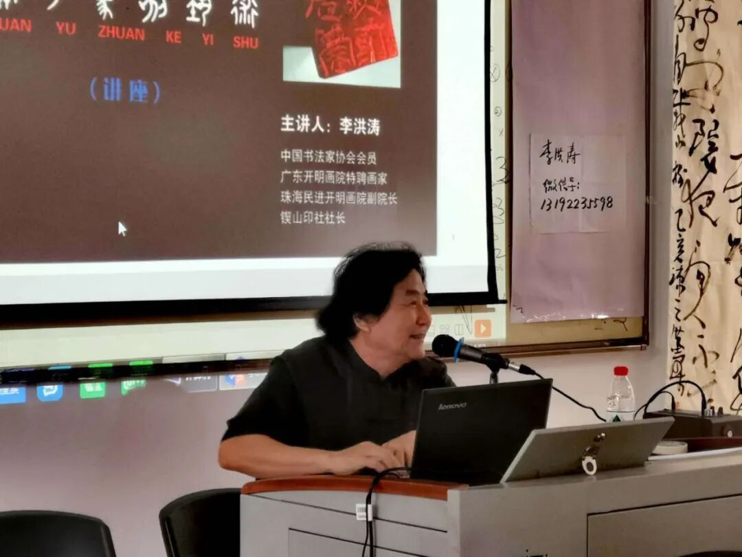书、画、印三艺兼擅,作品有较强的艺术个性,多次在各级展赛中参展获奖。作品入编《今日美术馆全国流行书风、流行印风征评展作品集》及由中书协主编的等多家国家级作品集。出版《李洪涛书法作品集》、《意象水墨——李洪涛山水画作品集》。在古元美术馆举办《李洪涛书、画、印作品展》个展。作品被今日美术馆、古元美术馆、珠海市博物馆、韩国书艺博物馆等多家展馆收藏。《李洪涛书、画、印艺术专访》拍摄在珠海电视台《西岸艺术频道》访谈节目中长达一个月时间滚动播出。长期从事高校书画艺术教学工作,提出:“学习古人,汲取当代,突显个性,完善自我”的十六字治学理念。南疆北国,桃李芬芳。珠海民进市委为李洪涛教授颁发“40年教龄”荣誉奖牌。