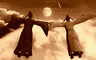 “举杯邀明月,对影成三人。月既不解饮,影徒随我身。暂伴月将影,行乐须及春。我歌月徘徊,我舞影零乱……”李白边饮边诵,突然哭了起来。