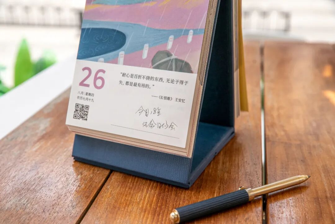 “晚上翻起日历,非常具有古早味。旁边放一盏台灯,这里放一个笔筒,生活的情调瞬间在脑海中浮现......”