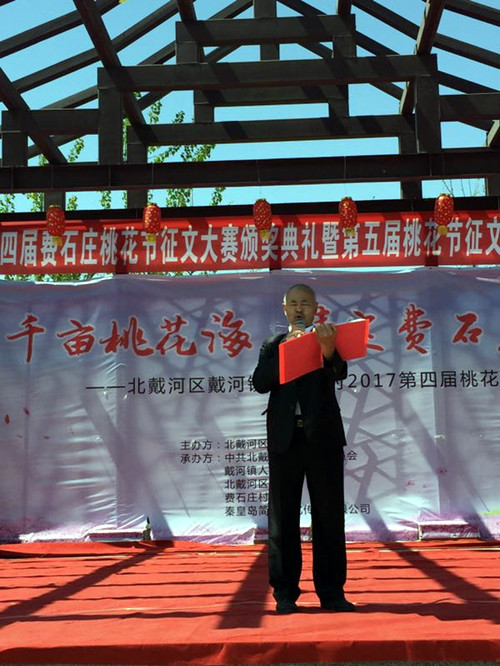 第四届费石庄桃花节征文大赛颁奖典礼 暨 第五届桃花节征文启动大赛启动仪式 一等奖名单 田春来 王永纯 孙庆丰 何孟梅 刘向 颁奖嘉宾 : 孙振彦(北戴河作家协会主席) 白绍兴 (市评论学会副会长) 侯亚东(村书记) 张少军(戴河镇镇长) 吴海龙(简美文化有限公司总经理) 二等奖 董春英 张洪雁 焦为贵 李小红 王久凌 无痕 颁奖嘉宾 :田春来(北戴河作家协会副主席) 何孟梅(中国诗歌春晚秦皇岛赛场负责人) 焦岩(吉林科技师范学院教授) 刘文忠(戴河镇副镇长) 毛蕊(秦皇岛晚报编辑,河北政法报记者,著名网络大咖) 三等奖 苗德生 吴卫 周雪梅 原玉兰 阎玉彩 周希孔 清水秋荷 李健 颁奖嘉宾: 王永纯 董春英 张振余 范昌滨(村委妇女主任) 侯占余(治保主任) 程湛馨(秦皇岛市作家协会理事 《抚宁文学》总编辑) 李立丰(组织委员) |