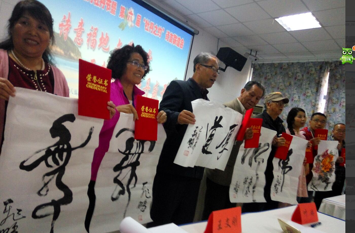 北戴河作家协会为《天津诗人》主编罗广才《中国诗人》主编安娟英 海子胞弟查曙明颁发 ...