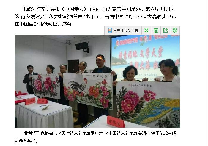 北戴河作家协会为《天津诗人》主编罗广才《中国诗人》主编安娟英 海子胞弟查曙明颁发 ...