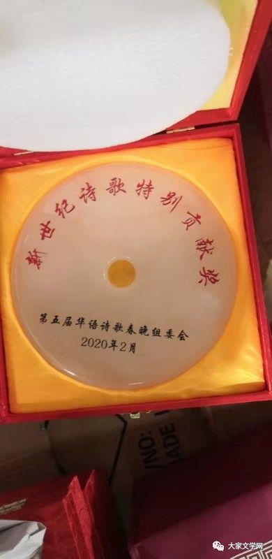 共克时艰,同舟共济,“大家文学奖”征稿启事 2020年肇始,新型冠状病毒来袭,武汉封城,一场没有硝烟的疫情防控阻击战牵动着亿万人的心,在抗疫前线,涌现无数感人的事迹和可歌可泣英雄人物,全国人民在行动!大家同舟共济,众志成城。在这场没有硝烟的战场上,很多人一往无前奋战在抗击病毒的第一线,为我们负重前行。面对这场罕见的新型冠状病毒感染的肺炎疫情,在这个特殊时刻,请您拿起手中的笔,及时记录人民群众抗击疫情的英勇壮举,用优秀的文学作品来温暖人心,鼓舞斗志,凝聚力量,坚决打赢这场疫情防控攻坚战。 《天涯诗刊》杂志社 大家文学网 中国作家在线网 为了繁荣文学创作,特设立“大家文学奖”,并面向海内外征稿。现将有关事项通知如下: (一)征稿体裁:现代诗,古体诗,散文。新诗可多首,总行限60行以内。诗词不超过3首。散文三千字以内。 1.一等奖两名,玉牌 名家书画 奖金(价值3000元纯玉奖牌 价值1000元名家字画 1000元现金)同时颁发荣誉证书;二等奖三名,玉牌 名家书画 奖金(价值3000元纯玉奖牌 价值1000元名家字画 800元现金)同时颁发荣誉证书;三等奖五名,玉牌 名家书画 奖金(价值3000元纯玉奖牌 价值1000元名家字画 500现金)同时颁发荣誉证书。 (玉奖牌附下图) 3.人气奖若干名,为了鼓励参赛者积极参与,根据作品的点击量和转发次数,设10名人气奖。颁发荣誉证书。价值一千元名家书画一幅。 三、注意事项